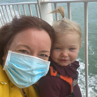 From our weekday home in Witley, Surrey, we "checked in" at the port at 10.30am - no need for tickets or QR codes as they just have a number plate recognition system at the port. Up you drive to a loading area, where I had my first of several full changes of Tiger's clothes from being carsick, then loaded onto the ferry itself. It is only a 45 minute trip but plenty of time to wander around the ship and get the sea air in our hair. Also, I think, first time Tiger has been on a boat?