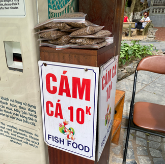 When we got off the boat, Tang was there with koi carp treats for Tiger to feed the fish!
