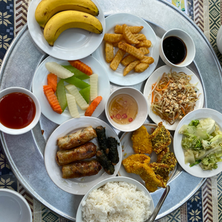 I should also probably say here that aside from the Ha Giang Loop trip I had made no plans for Vietnam and the rest of the trip was essentially generated through Chatgpt brainstorming on the fly! So on Sunday 26th October we took the train to Ninh Binh leaving at 12:50 and arriving at 14:50. I'd got our train tickets online via 12Go for 22 USD. We walked to the train station, ate street food before chilling out on the train. When we arrived, we tried for a Grab taxi (this is like Uber or Bolt in Vietnam), but couldn't get a car so ended up with a normal taxi to take us. to our hotel/homestay called Amy House which was £44 for 2 nights.