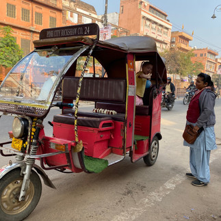 The next day, Friday 13th January, we had an early start with a 'Wake up with Jaipur' tuktuk tour with Pink City Rickshaw Company. This is a company run entirely by women, with all the rickshaws being driven by women. It aims to provide a new aspirational employment opportunity to 200 women from low income households in Jaipur. It really is still quite an odd thing to see as 99% of rickshaws are driven by men. We started the day bright and early at the flower market and saw the morning aarti (prayer chanting) at the Govind Devji Temple at the City Palace. Our tour was 2000 Rs, £20.